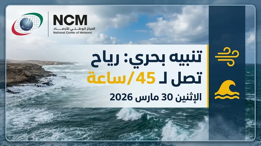 ويهيب المركز الوطني للأرصاد بضرورة متابعة التحديثات اللحظية عبر المنصات الرسمية، وتوخي الحذر خاصة للصيادين ومرتادي البحر نظراً للاضطراب المتوقع في الأمواج، والالتزام بإرشادات السلامة الصادرة عن الجهات المختصة.