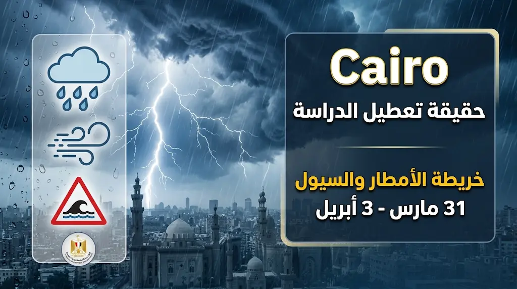 بشأن ما يتم تداوله حول تعليق الدراسة، لم تعلن الجهات الرسمية عن الموعد الدقيق حتى وقت نشر هذا التقرير، وتخضع قرارات تعطيل الدراسة لتقدير السادة المحافظين في كل محافظة على حدة، بناءً على تقارير هيئة الأرصاد الجوية وتطورات الحالة الجوية على الأرض، وحتى اللحظة، تسير الدراسة بشكل طبيعي يوم الثلاثاء 31 مارس، مع توقعات بأن تصدر أي قرارات استثنائية في حال تفاقم الحالة الجوية يوم الأربعاء الذي يمثل ذروة التقلبات.