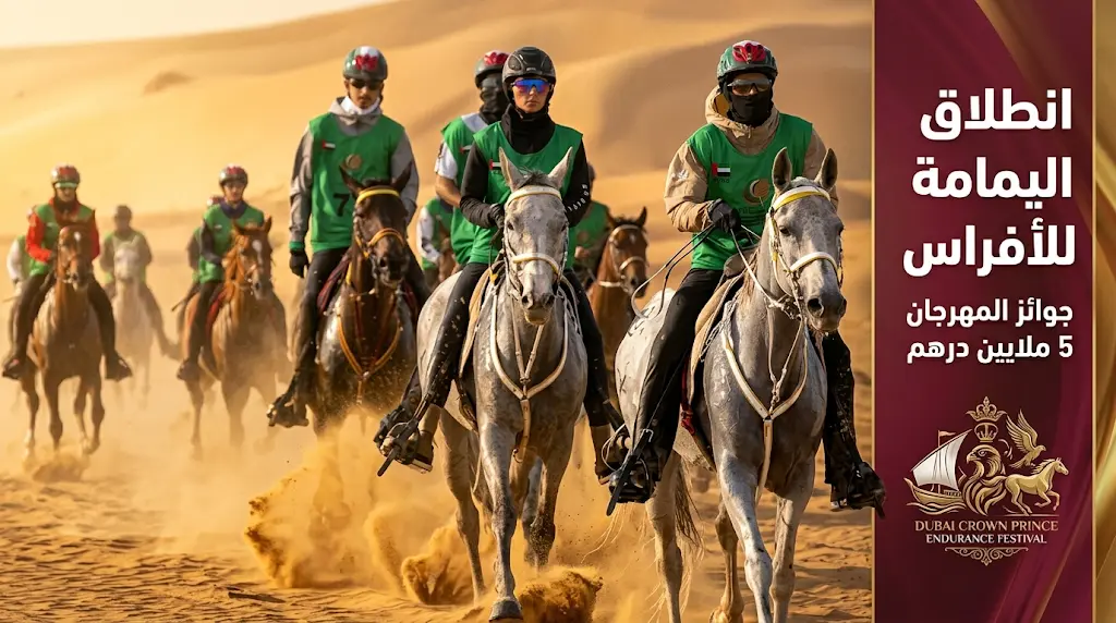 تتجه أنظار عشاق رياضة الفروسية والتحمل، صباح اليوم الاثنين 30 مارس 2026، إلى مدينة دبي الدولية للقدرة بمنطقة “سيح السلم”، حيث انطلقت فعلياً منافسات كأس اليمامة للأفراس لمسافة 120 كيلومتراً، ويُعد هذا السباق أحد الركائز الأساسية في مهرجان سمو ولي عهد دبي للقدرة لعام 2026، والذي ينظمه نادي دبي للفروسية بالتعاون مع اتحاد الإمارات للفروسية والسباق، وبمشاركة واسعة من نخبة الفرسان في المنطقة والعالم.