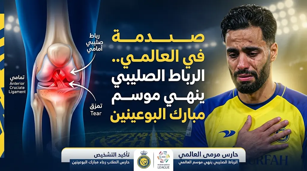 أعلن نادي النصر عبر حسابه الرسمي على منصة “إكس”، نتائج الفحوصات الطبية الدقيقة التي خضع لها الحارس مبارك البوعينين، وأكد البيان تعرض اللاعب لقطع كامل في الرباط الصليبي للركبة، وهي الإصابة التي تتطلب تدخلاً جراحياً فورياً، ومن المقرر أن يخضع البوعينين للعملية الجراحية خلال الأيام القليلة القادمة، ليبدأ بعدها برنامجاً تأهيلياً مكثفاً يمتد لعدة أشهر، مما يعني انتهاء موسمه الحالي بشكل رسمي.