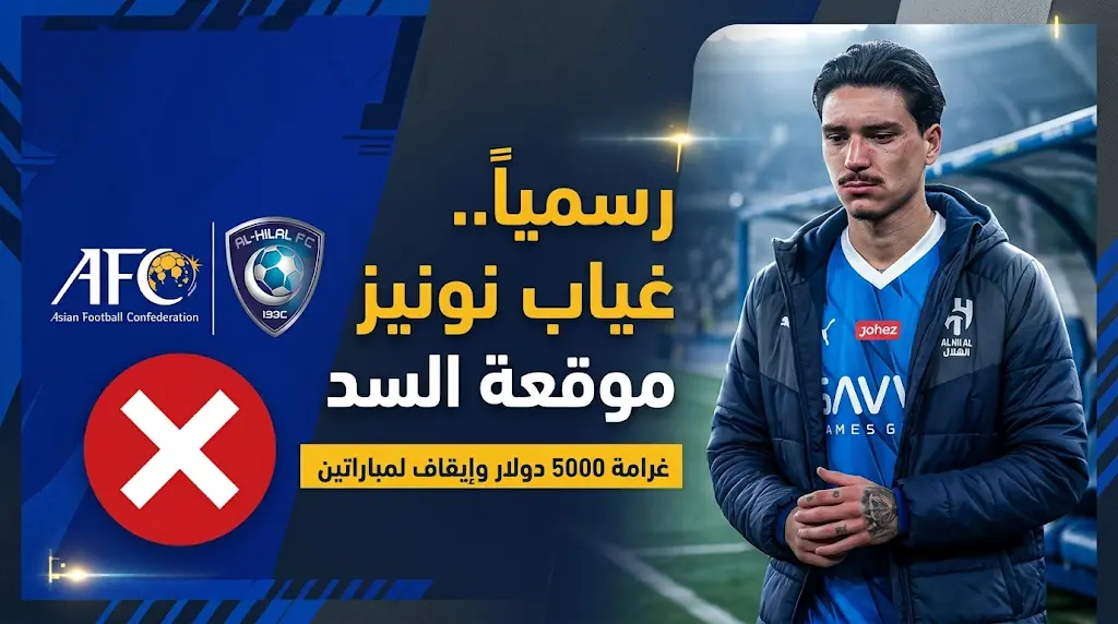 أكدت مصادر مسؤولة داخل الاتحاد القاري أن العقوبة الانضباطية الموقعة على داروين نونيز ستظل سارية دون أي تغيير، مجهضةً بذلك محاولات الإدارة الهلالية لرفع الإيقاف قبل الموقعة المرتقبة أمام السد القطري في دور الستة عشر من دوري أبطال آسيا، ويأتي هذا القرار بعد مراجعة دقيقة للالتماس المقدم، حيث استقر الرأي القانوني على استمرار نفاذ العقوبة.