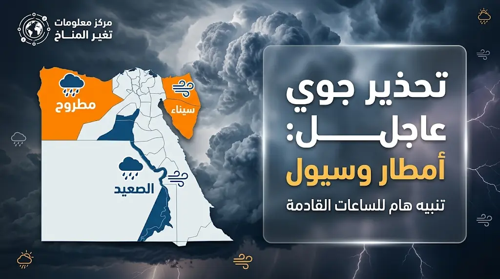 أصدر مركز معلومات تغير المناخ بوزارة الزراعة واستصلاح الأراضي المصرية تنبيهاً عاجلاً بشأن حالة حادة من عدم الاستقرار الجوي تضرب البلاد، تبدأ ملامحها الفعلية من مساء غدٍ الثلاثاء 31 مارس 2026، وتستمر حتى نهاية يوم الخميس 2 أبريل 2026، وتجمع هذه الموجة بين الهطولات المطرية الكثيفة والنشاط القوي للرياح المثيرة للأتربة، مما يضع عدة مناطق تحت خطر تشكل السيول.