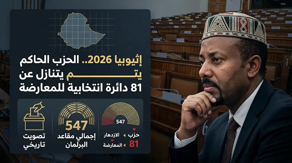في خطوة مفاجئة تعيد رسم الخارطة السياسية في القرن الأفريقي لعام 2026، أعلن حزب “الازدهار” الحاكم في إثيوبيا رسمياً عدم المنافسة على 81 دائرة انتخابية، مفسحاً المجال لقوى المعارضة والمستقلين في سابقة هي الأولى من نوعها منذ وصول الحزب للسلطة، ويأتي هذا القرار قبل أسابيع قليلة من انطلاق الماراثون الانتخابي المقرر في يونيو المقبل.