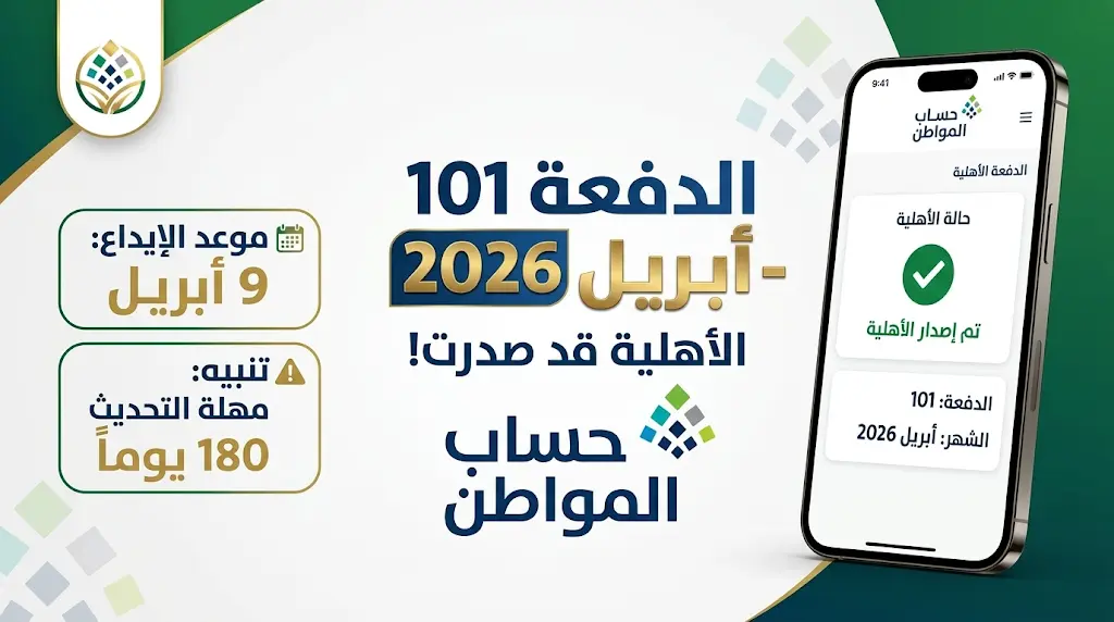 أعلن برنامج حساب المواطن رسمياً عن تفاصيل إيداع الدفعة 101 والمخصصة لشهر أبريل 2026، موجهاً تنبيهاً عاجلاً للمستفيدين بضرورة الالتزام بمهلة التحديث المقررة لتفادي فقدان الحق في الدعم، وذلك في إطار جهود البرنامج لضمان وصول الدعم لمستحقيه الفعليين في المملكة العربية السعودية.