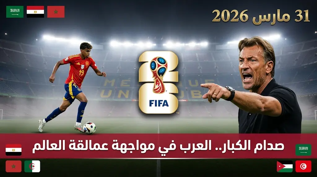 تترقب الجماهير العربية غداً “الثلاثاء” 31 مارس 2026، سلسلة من المواجهات الودية الكبرى التي تخوضها المنتخبات المتأهلة إلى نهائيات كأس العالم 2026، تأتي هذه المباريات في إطار “أسبوع الفيفا” الأخير قبل انطلاق العرس العالمي، حيث تسعى الأجهزة الفنية للوقوف على الجاهزية النهائية واختيار القائمة الرسمية التي ستخوض غمار المونديال.