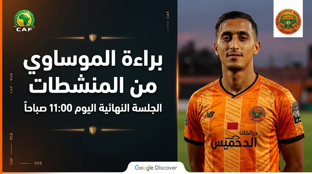 • الاتحاد الإفريقي “كاف” يعقد اليوم الجلسة النهائية لحسم ملف اللاعب حمزة الموساوي.