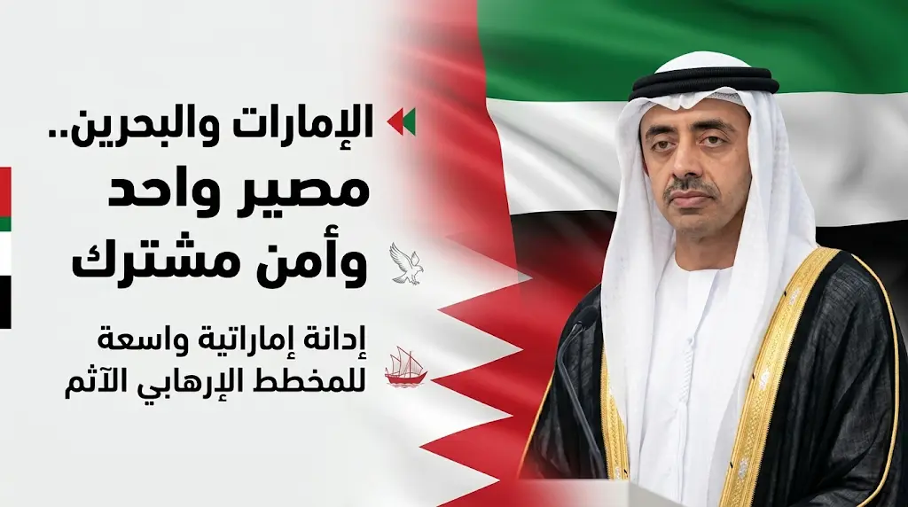أعرب سمو الشيخ عبدالله بن زايد آل نهيان، نائب رئيس مجلس الوزراء وزير الخارجية الإماراتي، عن إدانة دولة الإمارات العربية المتحدة الشديدة واستنكارها القاطع للمخطط الإرهابي الآثم الذي أعلنت مملكة البحرين الشقيقة عن إحباطه مؤخراً، وأكد سموه أن دولة الإمارات تقف صفاً واحداً مع البحرين في مواجهة كل ما يهدد أمنها واستقرارها.