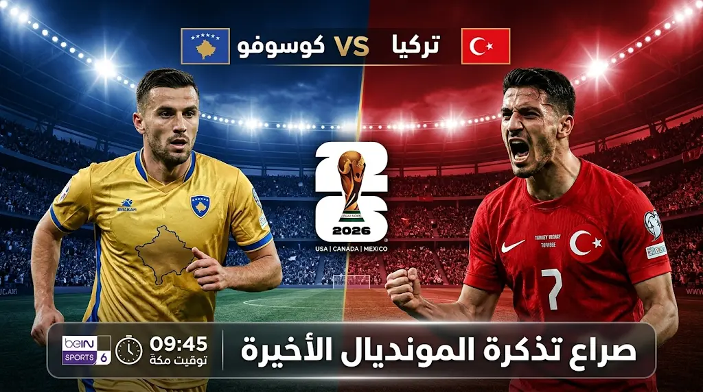 تتجه أنظار عشاق الساحرة المستديرة في الوطن العربي والعالم، مساء اليوم الثلاثاء 31 مارس 2026، نحو ملعب المواجهة الحاسمة التي تجمع بين المنتخب التركي ونظيره منتخب كوسوفو، في نهائي “المسار الثالث” من الملحق الأوروبي المؤهل إلى نهائيات كأس العالم 2026، وتعد هذه المباراة هي “تذكرة العبور الأخيرة” التي ستمنح صاحبها شرف التواجد في المونديال القادم.