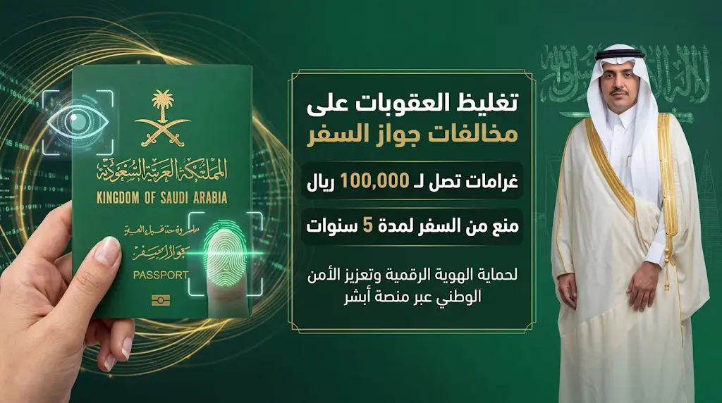 | تمكين الغير من استخدام الجواز أو رهنه | تصل إلى 100 ألف ريال | منع من السفر يصل لـ 5 سنوات |