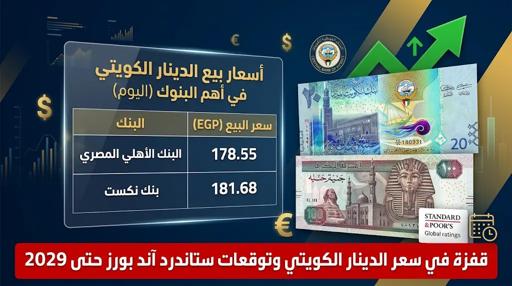 بناءً على تقارير “ستاندرد آند بورز” التي تتوقع وصول الدولار لـ 50 جنيهاً، فإن الدينار الكويتي (الذي يعادل تقريباً 3.25 دولار) قد يتجاوز بالفعل مستويات الـ 185-190 جنيهاً في حال استمرار وتيرة التراجع الحالية بنهاية العام.