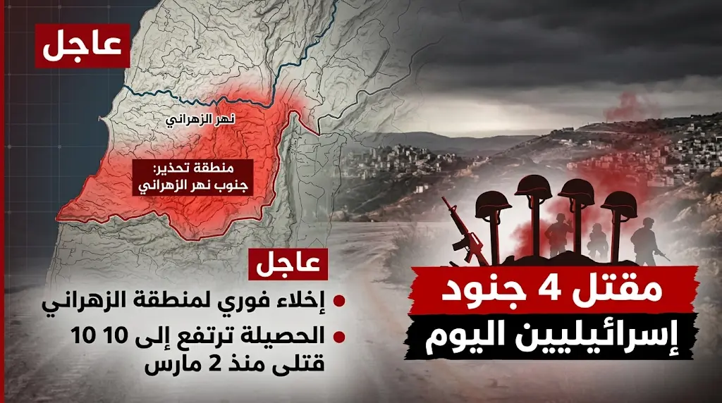 أعلن جيش الاحتلال الإسرائيلي، اليوم الثلاثاء 31 مارس 2026، عن مقتل أربعة من جنوده خلال المعارك العنيفة الدائرة في جنوب لبنان، ويأتي هذا الإعلان ليرفع الحصيلة الإجمالية لقتلى الجيش الإسرائيلي منذ تصاعد العمليات القتالية في الثاني من مارس الجاري إلى عشرة قتلى، وسط تحذيرات من توسع رقعة المواجهات الميدانية.