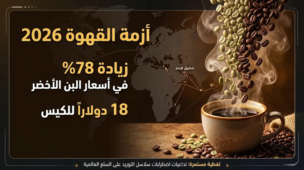 • تضافر عوامل “المناخ، الرسوم الجمركية، والتوترات الجيوسياسية” يضغط على سلاسل التوريد ويرفع أسعار البن الأخضر بنسبة 78%.