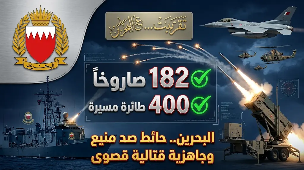 قوة دفاع البحرين تعلن اعتراض 182 صاروخاً و400 طائرة مسيرة وتؤكد الجاهزية القتالية بنسبة 100%