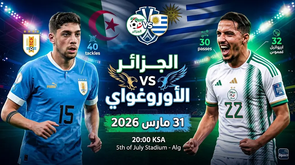 يخوض المنتخب الجزائري الأول لكرة القدم مواجهة من العيار الثقيل اليوم الثلاثاء 31 مارس 2026، عندما يلتقي بنظيره منتخب الأوروغواي في لقاء ودي دولي يجمع بين طموح “محاربي الصحراء” وقوة مدرسة أمريكا الجنوبية، وذلك ضمن نافذة المباريات الدولية (FIFA Date) لعام 2026.