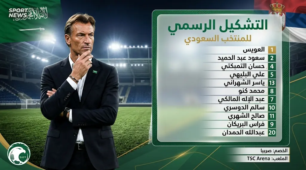 أعلن الفرنسي هيرفي رينارد، المدير الفني للمنتخب السعودي الأول لكرة القدم، عن التشكيل الرسمي الذي سيخوض به “الأخضر” مواجهته الودية المرتقبة أمام منتخب صربيا اليوم الثلاثاء 31 مارس 2026، وتعد هذه المباراة المحطة الإعدادية الأخيرة والنهائية ضمن البرنامج التحضيري للمنتخب قبل الدخول في غمار منافسات نهائيات كأس العالم 2026، حيث يسعى الجهاز الفني لوضع اللمسات الأخيرة على القائمة الأساسية والاطمئنان على جاهزية العناصر المختارة.