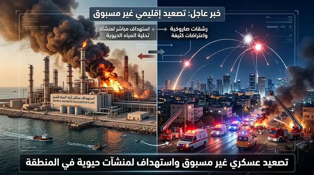 وفي تطور ميداني بارز، نقلت وكالة أنباء الطلبة الإيرانية «إيسنا» عن خروج محطة تحلية المياه في جزيرة قشم، الواقعة في مضيق هرمز الاستراتيجي، عن الخدمة بشكل كامل اليوم الثلاثاء.