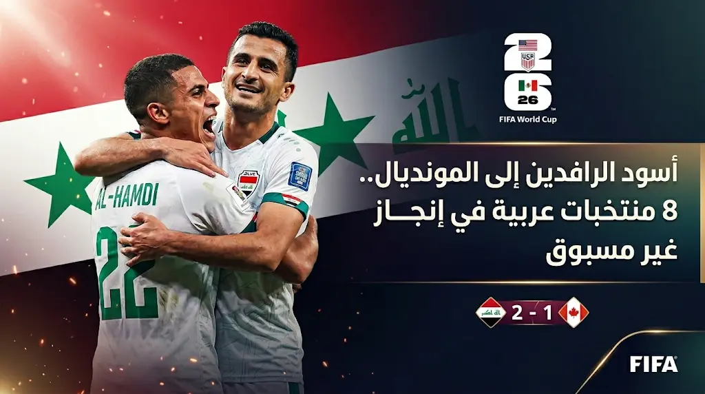 نجح المنتخب العراقي في كتابة فصل جديد من التاريخ الرياضي صباح اليوم الأربعاء 1 أبريل 2026، بعدما انتزع بطاقة التأهل الرسمية إلى نهائيات كأس العالم 2026، ليرفع عدد الممثلين العرب في المحفل العالمي المنتظر إلى 8 منتخبات في إنجاز غير مسبوق للكرة العربية.