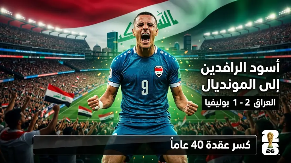 في إنجاز كروي حبس الأنفاس، نجح المنتخب العراقي اليوم الأربعاء 1 أبريل 2026 في كسر عقدة استمرت 40 عاماً، ليعلن تأهله رسمياً إلى نهائيات كأس العالم 2026 بعد فوزه الملحمي على بوليفيا بنتيجة (2-1).