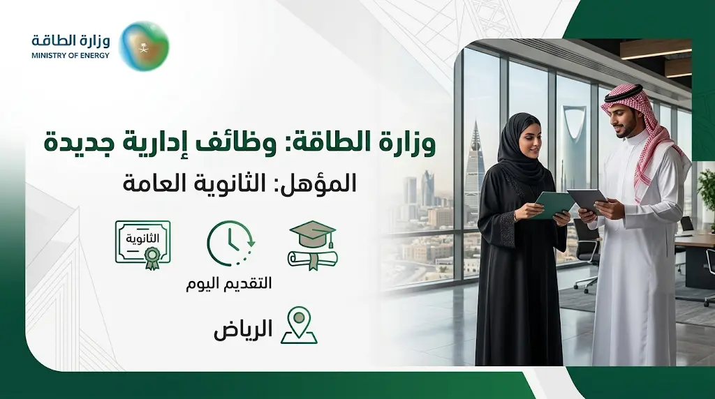 وزارة الطاقة تعلن وظائف إدارية لحملة الثانوية بدون خبرة في الرياض.. إليك رابط وخطوات التقديم