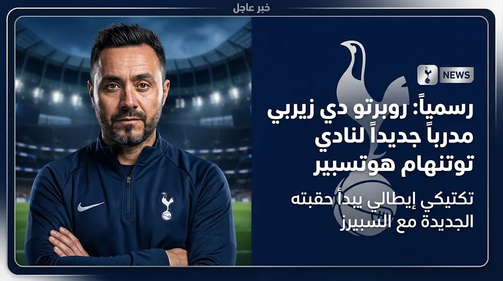 أعلن نادي توتنهام اللندني اليوم، الأربعاء 1 أبريل 2026، عبر منصاته الرسمية عن إتمام إجراءات التعاقد مع المدير الفني الإيطالي روبرتو دي زيربي، ليتولى زمام القيادة الفنية لفريق الرجال، وتأتي هذه الخطوة التصحيحية في وقت حرج من الموسم لانتشال الفريق من تراجع النتائج غير المسبوق.