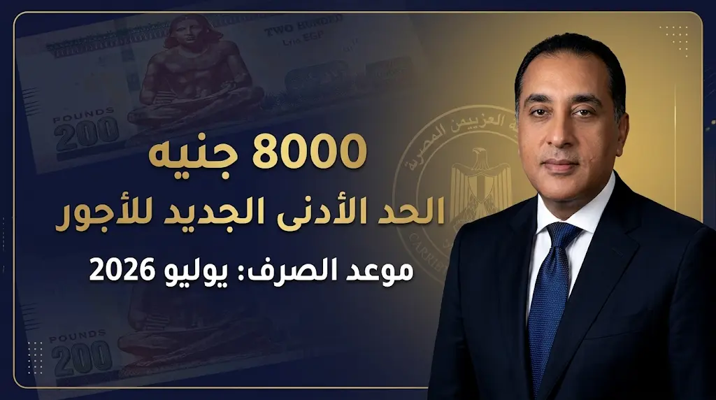 | الحد الأدنى للأجور 2026 | زيادة مباشرة لجميع الدرجات | 8000 جنيه مصري |