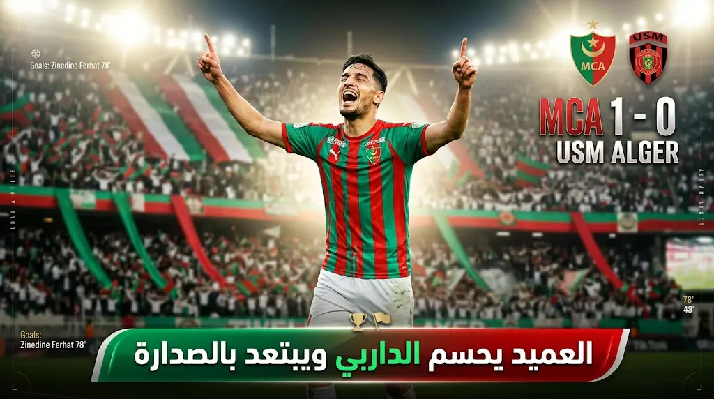 مولودية الجزائر تحسم داربي العاصمة أمام اتحاد العاصمة وتوسع الفارق في صدارة الدوري الجزائري