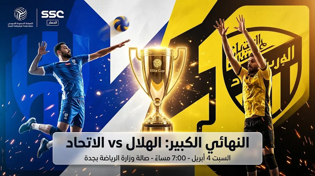 تواصلت في مدينة جدة، اليوم الجمعة 3 أبريل 2026 (الموافق 16 رمضان 1447هـ)، أصداء النتائج المثيرة التي شهدتها صالة وزارة الرياضة ضمن منافسات بطولة كأس النخبة للكرة الطائرة لعام 2026، وقد أسفرت نتائج الجولة الثانية عن انفراد ناديي الهلال والاتحاد بصدارة الترتيب، ليضربا موعداً مرتقباً في المباراة النهائية غداً السبت لحسم اللقب الأغلى في ختام الموسم الرياضي.
