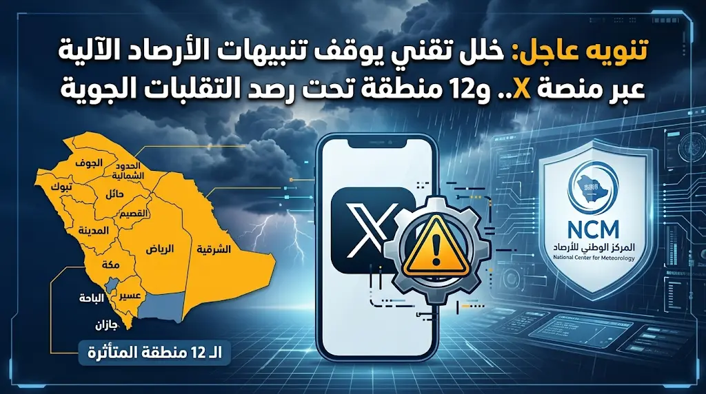 | نوع العطل | خلل تقني في البث الآلي للتنبيهات (منصة X) |