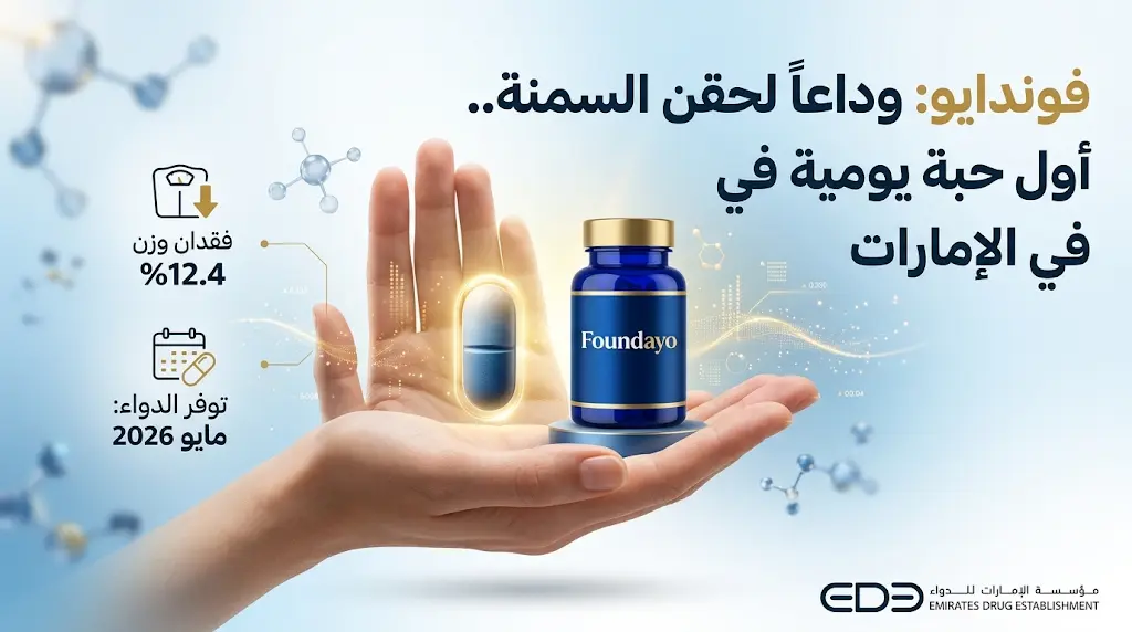 في خطوة استراتيجية تضع دولة الإمارات في صدارة المشهد الصحي العالمي، أعلنت مؤسسة الإمارات للدواء (EDE) اليوم الجمعة 3 أبريل 2026، عن الاعتماد الرسمي لعقار “أورفورغليبرون” (Orforglipron)، المعروف تجارياً باسم “فوندايو” (Foundayo)، كأول علاج فموي يومي لمكافحة السمنة وزيادة الوزن المزمنة، وبهذا القرار، تصبح الإمارات ثاني دولة في العالم تمنح الموافقة التسويقية لهذا الابتكار بعد يومين فقط من اعتماده من قبل هيئة الغذاء والدواء الأمريكية (FDA).