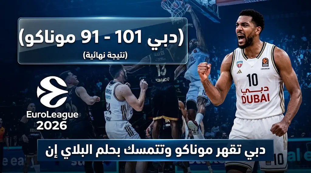 نجح فريق دبي لكرة السلة في تعزيز حظوظه للمنافسة على مقاعد “البلاي إن” في الدوري الأوروبي “اليوروليج” لعام 2026، بعد تحقيقه فوزاً مستحقاً على نظيره موناكو الفرنسي بنتيجة (101-91)، المباراة التي أقيمت اليوم الجمعة 3 أبريل 2026 ضمن الجولة الـ35، أعادت الفريق إلى مسار الانتصارات في توقيت حاسم من الموسم.