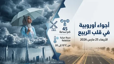 أعلن المركز الوطني للأرصاد في دولة الإمارات العربية المتحدة عن تأثر البلاد اليوم الأربعاء 25 مارس 2026، بحالة من عدم…