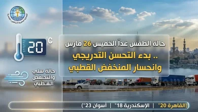 حالة الطقس غدًا الخميس 26 مارس 2026 في مصر: الأرصاد تعلن بدء تحسن الأجواء وانحسار الأمطار