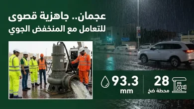 بلدية عجمان ترفع الجاهزية للدرجة القصوى وتفعل 28 محطة ضخ للتعامل مع تداعيات المنخفض الجوي