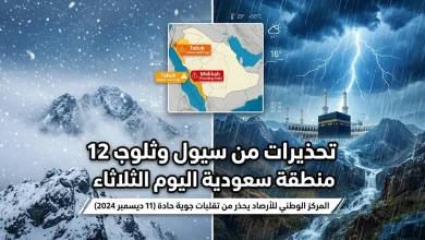 تحذيرات الأرصاد السعودية من سيول جارفة في مكة والمدينة وثلوج على مرتفعات تبوك اليوم الثلاثاء 5 رمضان