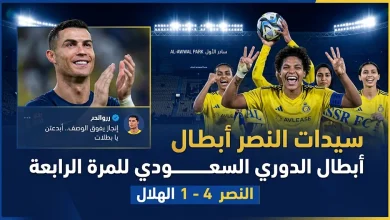 رونالدو يهنئ سيدات النصر بعد اكتساح الهلال برباعية وحسم لقب الدوري السعودي 2026