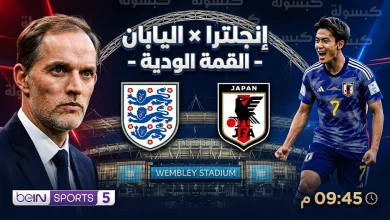 القنوات الناقلة لمباراة إنجلترا واليابان اليوم الثلاثاء 31-3-2026 والمعلق والتردد