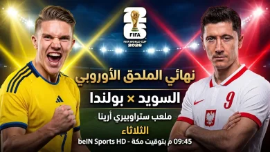 القنوات الناقلة لمباراة السويد وبولندا اليوم الثلاثاء 31-3-2026 في ملحق كأس العالم