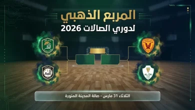 المربع الذهبي لدوري الصالات 2026: القادسية والعلا والطائي والسر يتأهلون لنصف النهائي بالمدينة المنورة