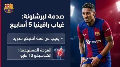 ضربة قوية لبرشلونة قبل مواجهتي أتلتيكو مدريد وتحديد موعد عودة رافينيا في الكلاسيكو