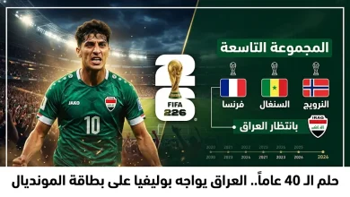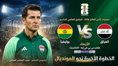 منتخب العراق يواجه بوليفيا فجر الأربعاء 1 أبريل 2026 في نهائي الملحق العالمي لحسم بطاقة المونديال. “أسود الرافدين” يسعون لإنهاء…