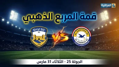 القنوات الناقلة لمباراة أربيل والزوراء الثلاثاء 31-3-2026 في الدوري العراقي الممتاز