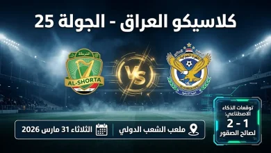 موعد مباراة الشرطة والقوة الجوية غداً الثلاثاء 31-3-2026 في الدوري العراقي للمحترفين والقنوات الناقلة