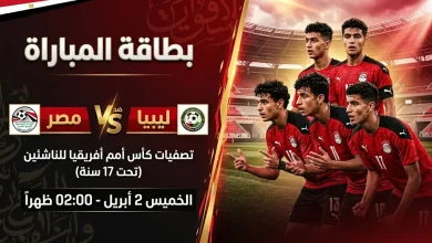 موعد مباراة مصر وليبيا القادمة الخميس 2-4-2026 في تصفيات شمال إفريقيا للناشئين