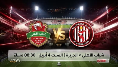القنوات الناقلة لمباراة شباب الأهلي والجزيرة السبت 4-4-2026 في دوري أدنوك للمحترفين