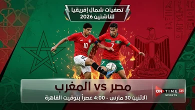 موعد مباراة مصر والمغرب للناشئين غداً الاثنين 30-3-2026 في تصفيات أمم إفريقيا تحت 17 عاماً