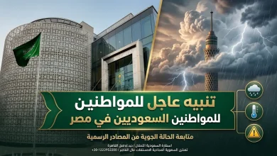 سفارة المملكة العربية السعودية في القاهرة تصدر تنبيهاً عاجلاً للمواطنين في مصر بسبب تقلبات الطقس المتوقعة