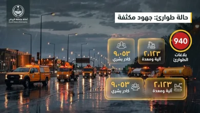 أمانة منطقة الرياض تستنفر 9 آلاف فرد وأكثر من 2000 آلية للتعامل مع الحالة المطرية بالعاصمة