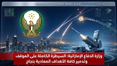 بيان عاجل من وزارة الدفاع الإماراتية يؤكد السيطرة الكاملة على الموقف بعد التصدي لاعتداءات صاروخية وطائرات مسيرة