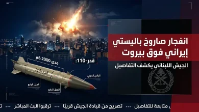 الجيش اللبناني يكشف في بيان عاجل تفاصيل انفجار صاروخ باليستي إيراني فوق أجواء بيروت