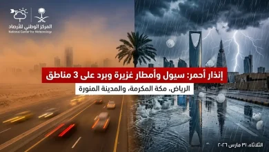 أصدر المركز الوطني للأرصاد تقريره اليومي حول حالة الطقس المتوقعة في المملكة اليوم الثلاثاء 31 مارس 2026، محذراً من تقلبات…